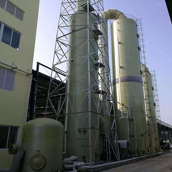 玻璃鋼噴淋塔處理酸霧,又名酸霧噴淋塔(玻璃鋼酸霧噴淋塔)。具有結(jié)構(gòu)簡單、能耗低、凈化效率高和適用范圍廣的特點,能有效去除氯化氫氣體(HCl)、氟化氫氣體(HF)、氨氣(NH3)、硫酸霧(H2SO4)、鉻酸霧(CrO3)、氰氫酸氣體(HCN)、堿蒸氣(NaOH)、硫化氫氣體(H2S)、福爾馬林(HCHO)等水溶性氣體。